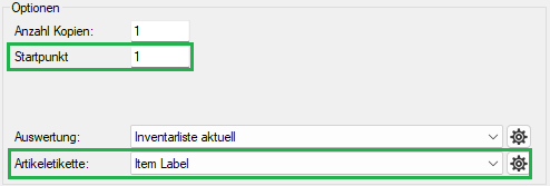 Startpunkt --> Legt fest, ab welchem Etikett der Druck beginnt. Wenn Sie z. B. 3 einstellen, werden die ersten beiden Etiketten übersprungen und ab dem dritten Etikett gestartet.